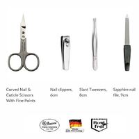 If you need a high quality manicure set to take care of your nails and eyebrows in professional style, the Sonnenschein travel manicure set is The One. Cleverly designed to include the most popular manicure tools made of stainless steel, it features a compact red leather pouch and individual pockets for each instrument, to ensure the blades are protected from dirt and damage for long-lasting durability of the cutting edge.